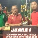 Anggota DPRD Sujatmiko & Kadisbudporapar Handhito Serahkan Piala Juara Turnamen Bola Volly Gunungsari Cup 1