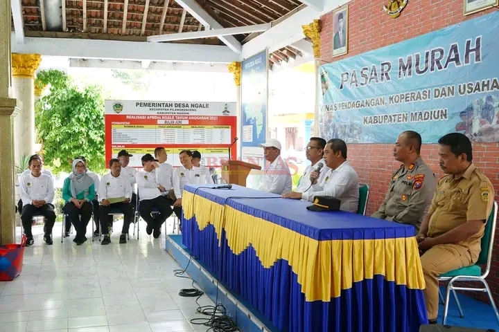 MADIUN,mediabrantas.id –Selain memantau harga dan ketersediaan komoditas bahan pangan di pasar, sebagai bentuk intervensi Pemerintah Kabupaten Madiun untuk mengendalikan laju inflasi sekaligus meringankan beban masyarakat, maka Pemkab. Madiun melalui Dinas Perdagangan, Koperasi dan Usaha Mikro menggelar operasi pasar murah di Desa Ngale, Kecamatan Pilangkenceng, Kabupaten Madiun yang menyediakan 600 paket bahan pokok, seperti gula, minyak goreng, beras dan cabe.
