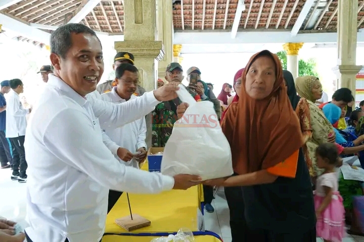 Dari pantaun di lapangan, nampak para ibu yang datang ke operasi pasar murah yang di kantor Desa Ngale terlihat begitu senang karena harga bahan pangan yang dijual lebih murah dari harga dipasaran.(Sugeng Rudianto)