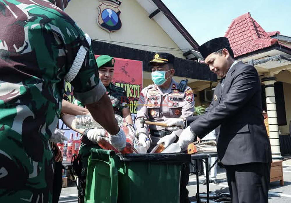 MADIUN,mediabrantas.id – Kenyamanan di Kota Madiun wajib terus terjaga. Karenanya, hal-hal yang berpotensi mengganggu kenyamanan wajib untuk ditekan. Seperti minuman keras dan knalpot brong. Petugas Polres Madiun Kota setidaknya berhasil mengamankan ribuan liter miras dan ratusan knalpot brong. Barang bukti razia tersebut dimusnahkan usai Apel Gelar Pasukan Operasi Ketupat Semeru 2025 di Mapolres Madiun Kota, Kamis (20/3/2025).
