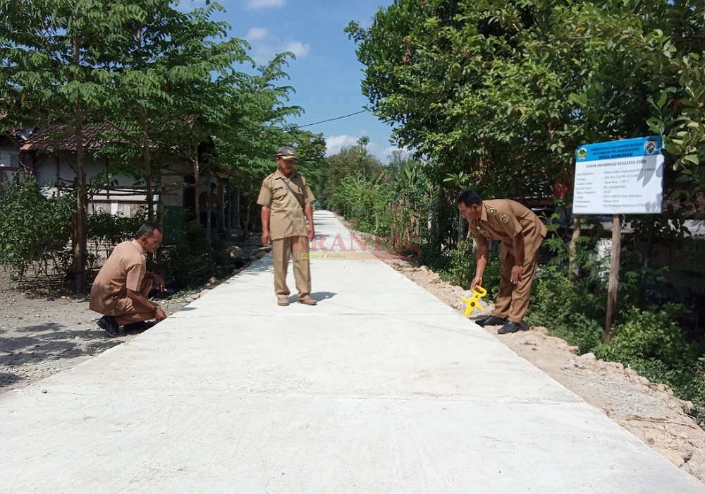 Kepala Desa Dawuhan, Suyanto beserta perangkat desa saat mengecek rabat beton