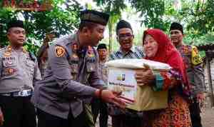 Kapolsek Pagak AKP Supriyono saat Berikan Bansos kepada Warga Desa Sumbermanjing