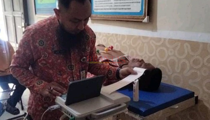 dr. Kristian Aribowo dari UPTD Puskesmas Pesanggrahan Saat melakukan Pemeriksaan Elekro Kardiograf (EKG)